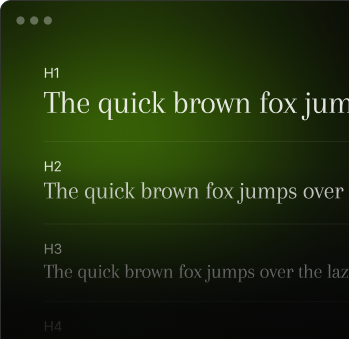 Use Webfonts, Typekit, Dafont, or upload your own — total freedom.
